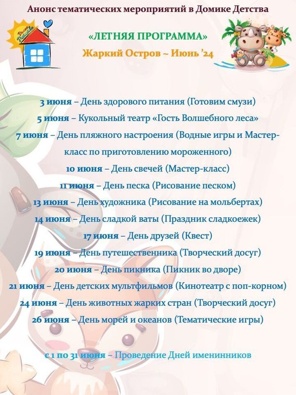 Летняя программа на июль
